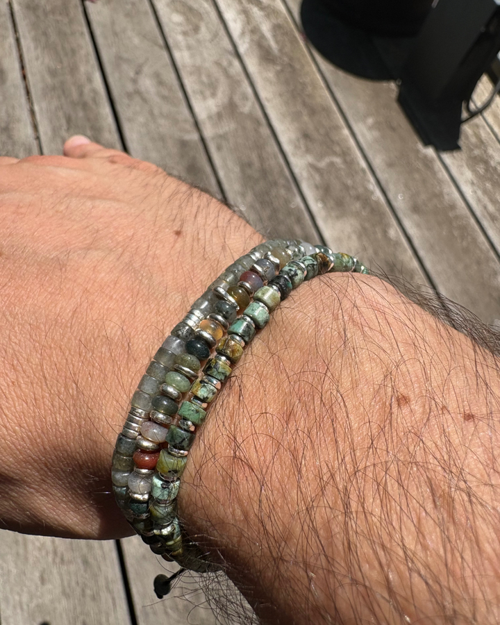 Bracelet Sirocco - Macramé Turquoise Africaine, argent brut