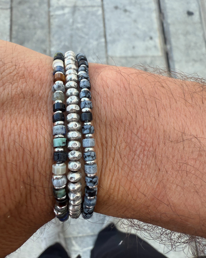 Obsidienne Cosmique – Heishi glacé & Argent d’ailleurs